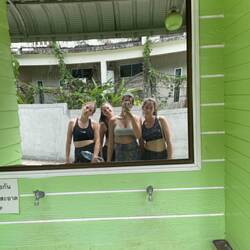 התחלנו לטפס עלמה ראשונה, אני אחריה ואחרונה חביבה הדס ככה בסבב כל פעם טיפסנו על קיר אחר. הקיר הראשון היה הגבוה ביותר והיה 30 מטר! למרות שהיה מאתגר ואחרי שסיימנו אותו היינו גמורות ולא הבנו בכלל איך אפשר עכשיו לטפס על עוד קיר בכל זאת המשכנו לטפס על עוד ועוד קירות כל אחד יותר מאתגר מהשני. לרוב זה הרגיש שהקירות בלתי ניתנים לטיפוס אבל ג׳יי אמר לנו just straight up הסתכלנו למעלה ראינו את הקיר השטוח והחלק שמעלינו והבנו שאין לנו ברירה אלא פשוט להיתפס ולעמוד על מאחזים קטנטנים ולקוות לא ליפול. הוא היה מאוד סבלני וממש כיוון אותנו איפה יש מאחזים לתפוס בהם, עודד אותנו, צעק מלמטה בעברית ימינה שמאלה ויאללה בלאגן.