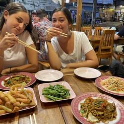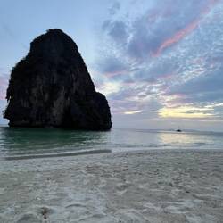 התעוררנו קצת לפני השקיעה אז החלטנו ללכת לפרינסס קייב ושם לשבת לראות את השקיעה. המערה היא פשוט מין שקע בסלע ליד החוף ואופיר הסבירה לנו שהנסיכה שכביכול נמצאת במערה היא סמל לפוריות ופיריון ולכן אם רוצים לבקש ממנה סיוע בנושא נהוג להניח בולבול כאוות נפשך, לכן היו שם מלא בולבולים מעץ וזה היה מוזר ומצחיק. מחוץ למערה היה חוף מהמם דיי ריק ושקט מלא בסרטנים קטנים, הלכנו לכיוון השקיעה לאורך החוף, החול היה לבן ויפה והסלעי ענק מסביבנו הפכו את כל הנוף לחלומי וקסום. ישבנו לראות את השקיעה עם מוזיקה שש בש ואוירה רגועה. דיברתי גם קצת עם של והיא אמרה לי שהיא סגרה כרטיסים לקמבודיה לסוף החודש! מרגש בטירוף!!! בסיום השקיעה הלכנו לחדר למקלחות והתארגנות לקראת סעודת שישי. כןכן זה לא טעות, מחר בשישי בערב אנחנו נהיה באוטובוס לילה ולכן לא נוכל לעשות ארוחת ערב חגיגית אז החלטנו לאחד את הסעודה האחרונה שלנו והפרידה מאופיר ולציין את שניהם היום. מי מאיתנו שבחרה לשים בגדים לפני שיצאנו מהחדר לבשה חולצה לבנה וחגיגית, ועשינו ארוחת שרינג של השמחות במסעדה הקבועה והטובה (כמובן שבכל המנות נו אג!).
