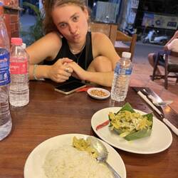 עליתי לואן, הופתעתי מכל הפסיליטיז באמת רמה גבוהה של ואן אחרי הנסיעה האחרונה שחוויתי פה בקמבודיה, אך אל דאגה עדין חם ומזיע מאוד. בדרך ראיתי מלא שדות שרופים, אכן ניכר שעונת השריפות הגיעה וזה חבל מאוד. עצרנו לארוחת צהרים, יש לי עדין מנה חמה בתיק שאני סוחבת איתי מפו קרדונג (לפני כמעט חודש בתאילנד!) והחלטתי שזה הזמן שלה אז במקום לקנות ארוחת צהרים במקום העצירה ביקשתי מים חמים. בחור תאילנדי שנוסע איתי בואן הזמין אותי לשבת איתו ועם חברו הקמבודי, הוא עובד כמתרגם ולכן יודע אנגלית מצויין. הם הזמינו אוכל והביאו להם מלא אז יצא טוב שאני לא הזמנתי גם כי הם הזמינו אותי לחלוק את הארוחה שלהם וזה היה ממש נחמד מצידם. עוד יתרון של לטייל לבד שאני מאוד נהנת ממנו, הרבה הזדמנויות לפגוש ולדבר עם אנשים חדשים, וגם לפעמים זוכים לקבל כל מיני הפתעות נחמדות מאנשים טובים שפוגשים לאורך הדרך.