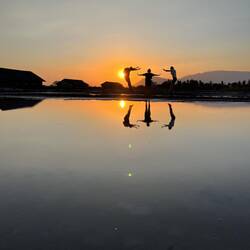 כשהגענו עלמה חטפה שם התקף צחוק פסיכוטי ולא ברור, אז נתנו לה להתפרק בלי לשאול יותר מדי שאלות, וכשהאירוע הזה הסתיים השכרנו אופנועים ויצאנו לדרך. דן ושוהם הנהגים, עלמה ואני די-ג’יי כל אחת עם רמקול שמות מוזיקה בקולי קולות ומנווטות את דרכנו לחוות הפלפלים. הדרך הייתה ממש יפה ופתאום באמצע הנסיעה התחיל לרדת גשם. ממש אין לזה צורה. עצרנו בצד חיכינו שהגשם יירגע והמשכנו בדרכנו. עברנו ליד האגם הנעלם שהיה ממש יפה וממש לא נעלם, והגענו לשדות הפלפלים. כשנכנסנו עוד היה טפטוף קל אז התיישבנו במסעדה של המקום וחיכינו לסיור שאמור לצאת עוד 20 דקות. בפועל זה לקח איזה 40 דקות ובזמן הזה מזג האויר הספיק להשתנות לחלוטין ונהיה חם בטירוף. הסיור היה ממש נחמד, לפי העיצוב והטיפוח ניתן לראות בקלות שבעלי המקום הם מערביים. המקום הזה בעצם הוקם מתרומות של איזה אנגלי ובלגי והיום מייצא פלפלים מסוגים שונים לכ60 מדינות בעולם, וגם על הדרך דואג לחינוך והשכלה של ילדי הכפר שגרים באיזור. המדריכה הסבירה על תהליך הייצור של הפלפלים ועל ההבדלים בניהם ובאמת היה קצר וקולע. החלטנו להתחיל להתגלגל משם חזרה לכיוון העיר ובדרך לעצור באיזה נקודה לשבת ליד האגם, ואכן כך היה. ישבנו שם איזה כמה שעות טובות במטרה לראות משם את השקיעה ואז ברגע כמעט אחרון כשהבנו שהשקיעה בכלל לא תהיה פוטוגנית מהנקודה שאנחנו יושבים בה החלטנו באופן ספונטני לנסוע לראות את השקיעה משדות המלח. נסענו והגענו בול בזמן וכל כך שמחנו שנסענו לשם כי השדות מלח האלה מדהימים ובשקיעה זה בכלל מהמם ומיוחד ממש. ראינו את המקומיים שם עובדים בשדות, ניסיתי לעזור אבל זה באמת בלתי אפשרי לסחוב את המשקלים האלה וזה מטורף שהם אשכרה חיים ככה ועובדים בשדות האלה כל יום. המקומיים היו ממש באוירה טובה ככה כמו סוף משמרת עשו צחוקים בניהם ואנחנו דפקנו בוק תמונות כמו תיירים טובים באווירת מדבר המלח של דרום אמריקה.