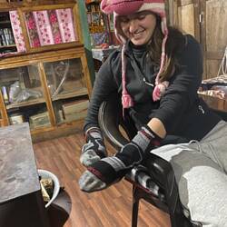 התחלנו לטפס, של דילגה למעלה, אני טיפה יותר התקשתי, בערך באמצע הדרך נראה שענן רחוק מתקרב אלינו וגם התחיל לרדת קצת שלג ורוחות חזקות נשבו, אז החלטנו שזה סתם עושה אותנו חולות ואין צורך להגזים. הגענו לנקודה יפה שראינו בה תצפית מהממת לכל העמק, התרשמנו כמה דקות וירדנו למטה. בהחלט היה שווה את זה.
