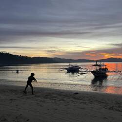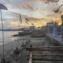 המשכנו צפונה, הגשם נרגע, ופתאום ראינו סתם איזה פנייה אקראית בכביש בדרך סלולה מבטון. בספונטניות פנינו ונסענו כמה דקות בכביש עד שהגענו ממש עד לחוף הים באמצע כפר דייגים. יצאנו לראות קצת את הכפר, הכל מסביב היה רשתות ומחצלות לייבוש דגים קטנים. פיליפיני אחד ראה אותנו מרחוק ובא לדבר איתנו. מסתבר שהוא הקונסול של האיזור והוא גם עובד בתחום הדייג פה בכפר. הוא לקח אותנו לחוף והתחיל להראות לנו בדיוק איך דגים את הדגים ומה עושים איתם. ממש שלב אחרי שלב הסביר לנו הכל כולל הדגמות וציורים על החול. זה היה ממש מרשים ולמדנו המון. הוא רצה גם שנפגוש חבר שלו שקוראים לו אבי (אברהם..) אבל הוא לא ענה לו בטלפון אז נפרדנו לשלום הודינו לו והמשכנו הלאה.