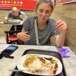 כשיצאנו ירד גשם אז נאלצנו לשנות תכניות וחזרנו למתחם אוכל ומשם ליד ההוסטל במרחק כמה דקות הליכה יש מסעדה שקיבלה כוכב מישלן על אחת המנות עוף בסויה שלהם (מנה מאוד שבאופן כללי היא מאוד נפוצה במזרח). הם השאירו את המחיר הנמוך שהיה גם אחרי שקיבלו את הכוכב מישלן אז היינו כמובן חייבות ללכת לנסות ולטעום מנת כוכב מישלן ב12 שקל. רק אגיד ששל שברה על זה צמחונות וחבל שכך. באמת מאכזב מכל הבחינות, ציפיתי שזה לפחות יהיה רך ומתפרק כזה כמו העוף במרק של סבתא מירי אבל אפילו זה לא קרה.