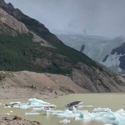 Nach knapp vier Stunden erreichen wir den Scheitel der Moräne, hinter der die Laguna Torre liegt. Als wir dort ankommen, sind wir total überrascht: Am Abflussende der Lagune, direkt vor unseren Augen, schwimmen richtig grosse Eisberge im Wasser. Sie stammen vom bereits genannten Nato-Gletscher, der in die Lagune kalbt.
