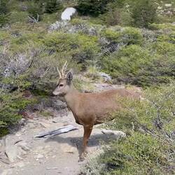 Kaum zwei Meter vor uns steht ein grosser Huemul, eine hiesige Hirschart, die man eigentlich nie zu Gesicht bekommt - wie uns Einheimische versichert haben.