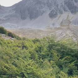 Der Aufstieg führt zuerst mit sanfter Steigung durch einen lichten Wald von schlanken Lenga-Bäumen. Links und rechts erblicken wir einzelne zusammengezimmerte Holzhäuser, die hier nur stehen, weil in Argentinien (laut Manuel) jeder auf seinem Grundstück bauen darf, was er will. Die Häuser haben aber weder Anschluss an Wasser, Abwasser, Elektrizität oder Gas und wir wissen nicht, wie sich die Bewohner das Leben organisieren. Allerdings stellen wir fest, dass wir hier - mitten im Nirgendwo - Netz haben und WhatsApp-Nachrichten empfangen können!