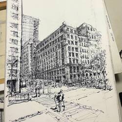 Schon während unserer ersten Reisetage im November haben wir José Luis hier in Buenos Aires nahe der Plaza Dorrego bei den Künstlern kennengelernt. Seine mit Tusche gezeichneten Architekturbilder von Buenos Aires haben es Martin angetan. Da wir damals aber noch keines kaufen wollten, sind wir so verblieben, mit ihm bei unserer Rückkehr wieder Kontakt aufzunehmen. Martin schreibt ihm eine Email; die Adresse finden wir auf einem Foto, das Regine damals vom Künstler und einem seiner Werke aufgenommen hat. Aus ungeklärten Gründen kann Martins heutige Mail vom Mail-Provider nicht versendet werden. Warum auch immer…