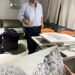 José Luis ist Architekt, 54 Jahre alt und Künstler aus Leidenschaft! Er kommt um 21 Uhr nach seiner Arbeit im Centro Cultural Kirchner mit einer ganzen Mappe voller Zeichnungen zu uns und wir unterhalten uns bei einem Bier bestens.