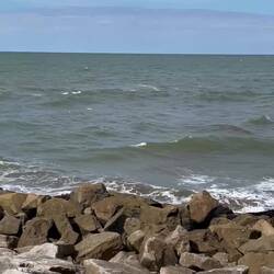 Für heute haben wir einen Spaziergang zum Museo de ARte Contemporaneo Mar del Plata ins Auge gefasst, abgekürzt MAR. Wenigstens die fünf Kilometer Hinweg wollen wir auf Schusters Rappen bewältigen, denn es ist ein schöner Weg auf der Strandpromenade, immer der Küste entlang mit Blick aufs Meer.