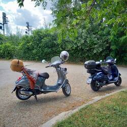 Auf geht's zum ersten Etappenziel Verona. Nach der Arbeit noch hopp hopp 2 Vespas aufgeladen. Und nein dieses Mal darf die Sunny nicht mit... Schickimicki darf ihre erste große AusfahrtLes mer