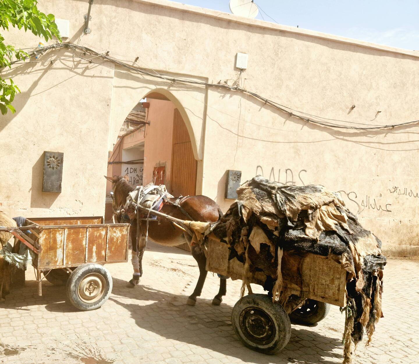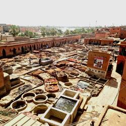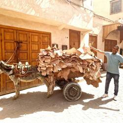 In riesigen Bottichen wird das Leder gegerbt und anschließend in bunten Farben gefärbt. Mit bloßen Füßen und Händen bearbeiten die Handwerker die Tierhaut. Die Arbeit ist nicht nur anstrengendLeggi altro