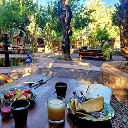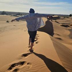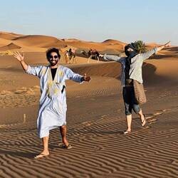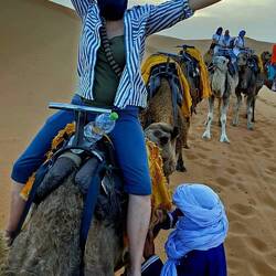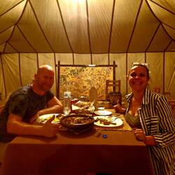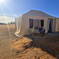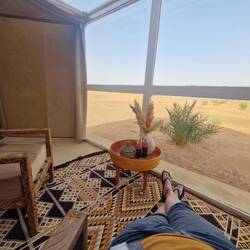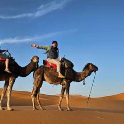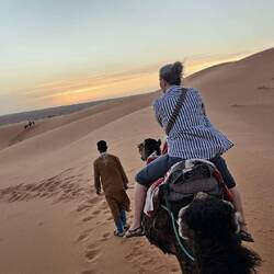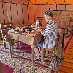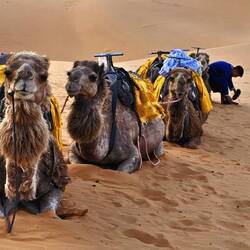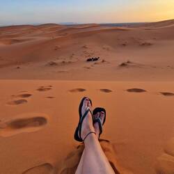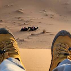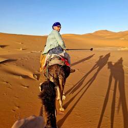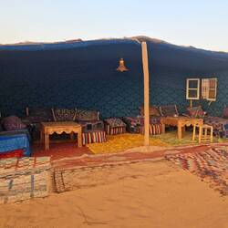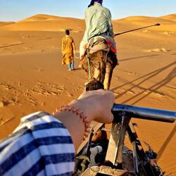 Nach fast 3 Std durch die Wüste kommen wir ziemlich platt und mit schmerzenden Oberschenkeln an. Das dieses Camp so tief in der Wüste liegt und wir solch eine weite Strecke mit den Kamelen reitenRead more