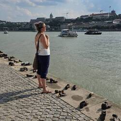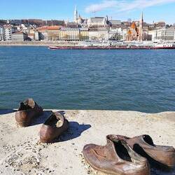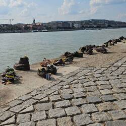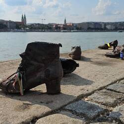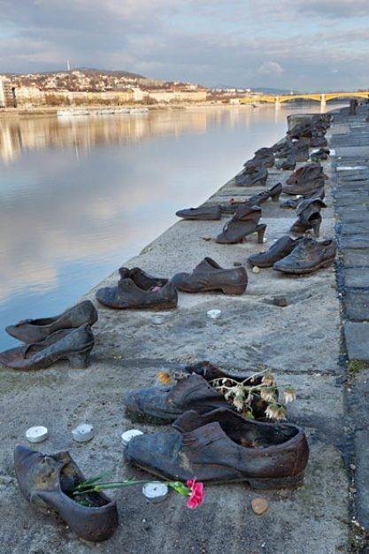 Am Donauufer ca. 300 m südlich des Parlaments stehen auf 40 m der Kaimauer 60 Paar Schuhe aus Metall. Bildhauer Gyula Pauer und Regisseur Can Togay schufen das Mahnmal zum Gedenken an die 1944-45Leia mais