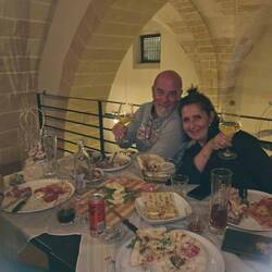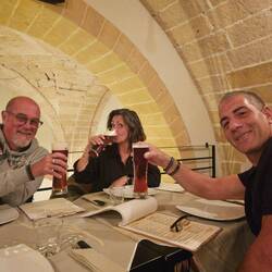 Nachdem wir die Studentenstadt Lecce durchquert hatten, ging es weiter zur "La Familia". Genni, Giuseppe und Benedetta haben uns herzlich empfangen. Es gab, wie immer, ein feudales Abendessen mitLeggi altro
