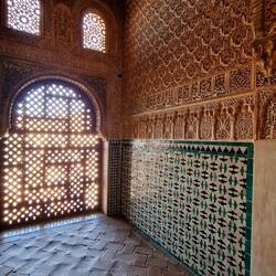 Die Alhambra ist eine Stadtburg auf dem Sabikah-Hügel im andalusischen Granada in Spanien. Sie gilt als eines der bedeutendsten Beispiele des maurischen Stils der islamischen Kunst, ist eine derLeia mais