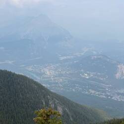 Lekker uitgeslapen omdat we gisteren laat aankwamen. Ook hier (in Revelstoke zijn we ook met de gondola geweest) met de gondola omhoog! Het was nog steeds rokerig van de bosbrandLæs mere