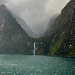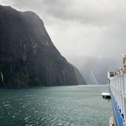 Een scenic cruising door Fiordland National Park. Dit is in het zuidwesten van het zuider eiland. Het zijn dus fjorden! We gingen de eerste fjord in om 06:45. Dit is ook de bekendste fjord, MilfordLeer más