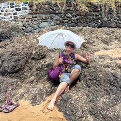 Dagje in Eden. Niet veel te doen. Alles was open voor de boot. Naar een rockpool gewandeld, daar heb ik gezwommen. We zijn langs het strand gelopen. En weer terug. Verder uit de baai zagen we wel eenLeer más