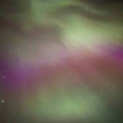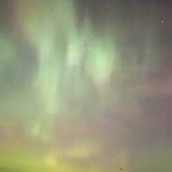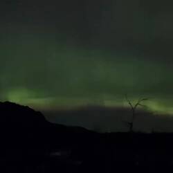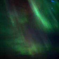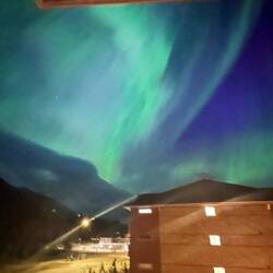 Zondag avond op werk kwam de huisman naar de balie en riep ‘noorderlicht!’ Wij naar een kamer die vrij was en over het balkon hangend naar het noorderlicht kijken. Wow weer zoLeer más