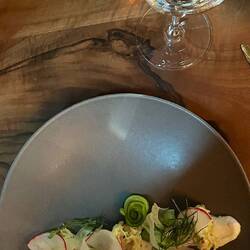 Uit eten bij Sauvage in Canmore. Man man man dat was lekker!!! We kozen het tasting menu met wine paring. En het was geweeeeeeeldig lekker.
