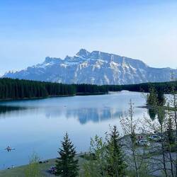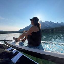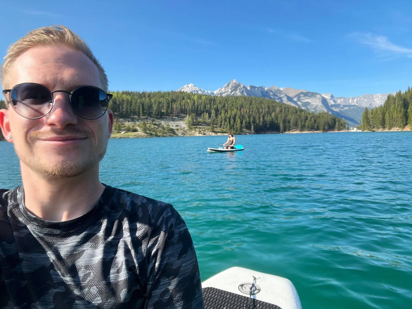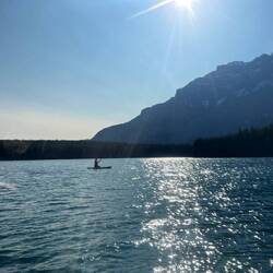 Paddleboarden samen met Nathan op 2 Jack Lake. Heeeeerlijk. Water is nog fris maar zonnetje scheen en goede gesprekken. Heerlijk.