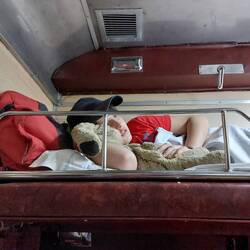 Reisetag. Zug nach Siliguri. Erstmal pennen. Die Toilette riecht unterirdisch. Fliegende Händler bieten alles an...Handtaschen, Schals, Schlappen, T- Shirts, Elektronik, Spielzeug, Gurken mit Salz,Læs mere