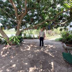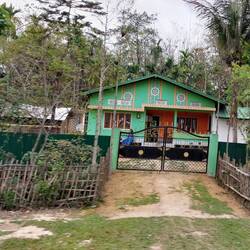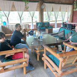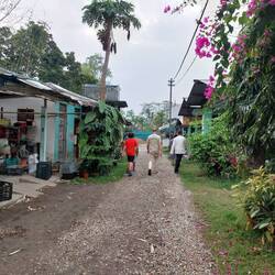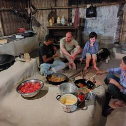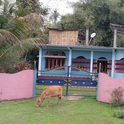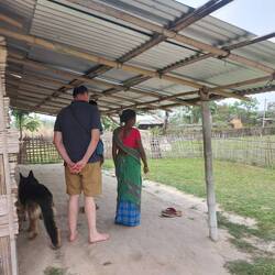 Heute sind wir zum Frühstück in das Haus von Neelam, seiner Frau Mon und Neelams Mama Beauty eingeladen. Es ist ein Stückchen von der Farm entfernt. Dort sind auch die Kühe (während dieLæs mere