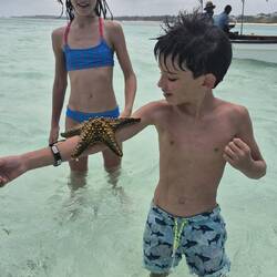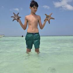 Hicimos un paseo en bote que nos llevó cerca a hacer snorkel a un arrecife, luego a un banco de arena y finalmente a ver estrellas de mar.