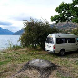 Danach weiter, ungefähr drei Stunden nach Kingston wo wir nach längerer Zeit auf einem kostenlosen Stellplatz ohne Strom übernachten und dass direkt am See (Lake Wakatipu) 😱🎉🎉