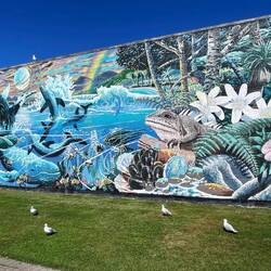 Anschliessend längere, 4.5h Fahrt nach Picton mit einem Halt in Takaka um das Meer-Wandgemälde zu fotografieren und was zu essen.