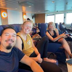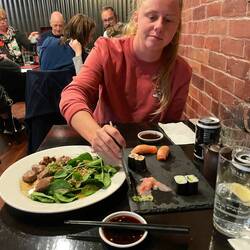 Überfahrt nach Wellington, Rob‘s Cousine nochmals auf der Fähre getroffen und Sushi zum Abendessen gefunden.