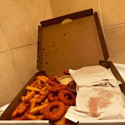 Wieder etwa vier Stunden sind wir heute gefahren, kurzer Stopp im Berlins für einen Pie und ein toasted Sandwich inkl. Foto mit Sandfliegen Statue 👌🏻🦟