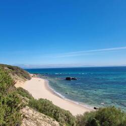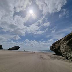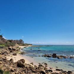 Hinweg an kilometerlangen Traumstränden, teilweise über Felsen.