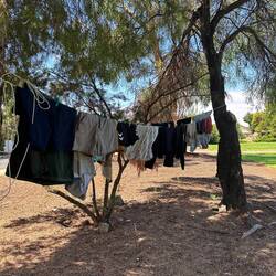 Muss auch ma sein, die hauen hier ja alles in den Trockner, der Wind mit dieser schönen Sonne tut’s auch