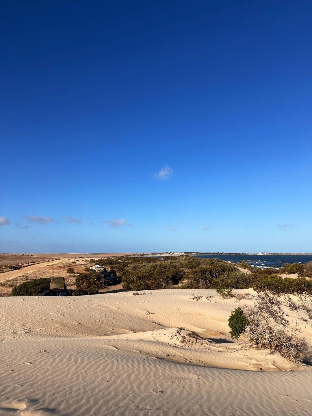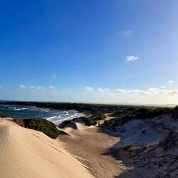 Im Nationalpark von Coffin Bay sind die Strände schon so weiß das es einen richtig blendet schaut man entlang der Dünen