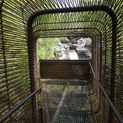 Angepriesen als malerischen Wasserfall mit Kunstinstallation. Nunja. Die Kunst suchten wir vergeblich. Schön war es trotzdem