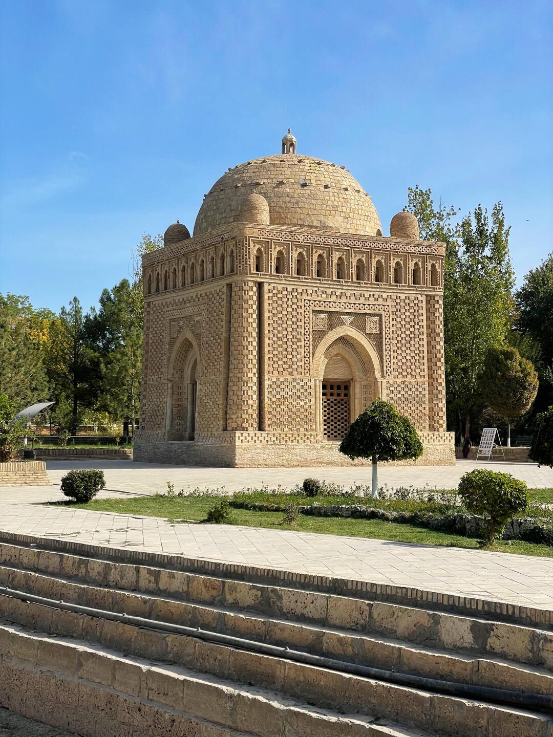 Bus to the sameniden mausoleum, 1000 years old and in still there because it was covered in sand when Dingis Khan conquered. Then to the 2 Koran schools and on to the Bolo Khaus mosque with 40 woodenLue lisÀÀ