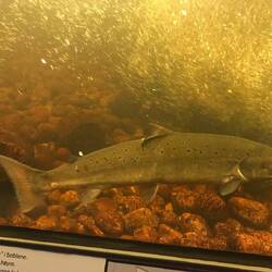 Künstliche Lachstreppe im Berg, damit die Fische den Wasserfall umgehen können und zu den Laichplätzen im Fluss oberhalb gelangen