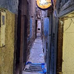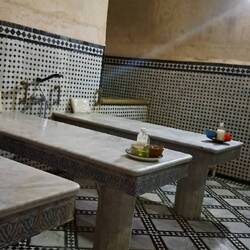 Dazwischen lagen einige Stunden Faszination, Abtauchen in eine andere Welt und, ja, auch Ekel. Eine äusserst kompetente Frau aus Fes führte uns durch die Medina von Fes, erzählte uns über das Leben hier, zeigte uns die angeblich älteste Universität der Welt und ermöglichte uns den Zugang zu einem Hammam, einem öffentlichen Badehaus. Sie gab Einblicke in die Gerberei, Färberei und Stickerei, und das sind nur wenige der uralten Handwerke die hier betrieben werden.