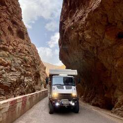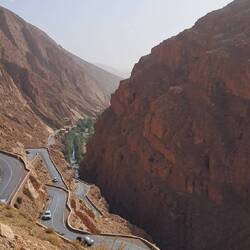 Auf Schotterserpentinen wand sich die Straße nach unten ins Tal bis wir schließlich wieder Asphalt unter den Rädern hatten. Als wir dachten, das Schönste hätten wir nun hinter uns, fuhren wir durch eine Felsenge und danach schlängelte sich die sehr gute Straße in etlichen Kehren durch die Dades Schlucht. Hier boomte der Tourismus. Viele Hotels, Auberges, Restaurants, Läden mit Andenken und Rosenwasser säumten den Weg, bis wir schließlich auf dem Parkplatz eines Hotels landeten. Der Chef machte sich gleich auf, Zutaten für unser Abendessen, Tajine, zu besorgen.Read more