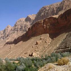 Die Todra Schlucht, unweit von Tinghir, sehr beeindruckend, aber auch sehr touristisch. Selbstverständlich nutzten das auch die hiesigen Händler, um ihre Teppiche, Shirts und Tücher an den Mann zu bringen. Viele Kletterer hingen in den senkrechten Wänden und auch Andi versuchte sich mit erfahrener Unterstützung einer unserer Mitreisender in einem Klettersteig.