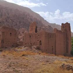Nach einigen Kilometern bogen wir ab in das "Rosental". In diesem grünen Flusstal in der ansonsten kargen braunen Gebirgslandschaft werden Walnuss-, Mandel-, Obstbäume und Rosensträucher angebaut. Leider sehen wir gar keine Rosen, da die Blüte im April/Mai ist.