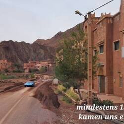 Und als wir heute unterwegs Richtung "Straße der Kashbahs" waren, sahen wir teils ordentliche Mengen Sand, Steine und Schlamm das von den Hängen heruntergespült wurde. Seltsamerweise waren hauptsächlich Kinder damit beschäftigt, mit Schaufel und Besen die Straßen wieder zu reinigen.