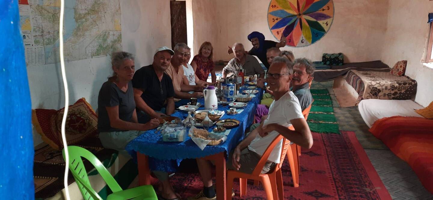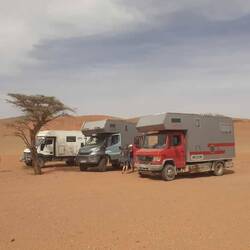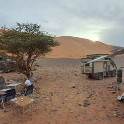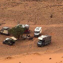 Wir haben uns endlich wieder mit Sepp und Roland getroffen, die gemeinsam mit uns auf der Fähre nach Marokko reisten, die allerdings eine andere Route fuhren. Bei einem sehr guten Couscous im Campingplatz Restaurant schmiedeten wir die weitere Reiseroute. Zuerst aber wollten wir hier in den faszinierenden Dünen Spaß haben.