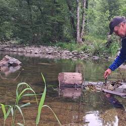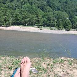 An dem Fluss Dzirula auf grüner Wiese, umgeben von Bäumen, sehr entspannt.