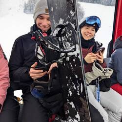 Heute ist das Carlchen ganz früh los, um auf den frisch präparierten Pisten zu cruisen. Wir anderen sind den Tag entspannter angegangen und haben erst einmal gefrühstückt. Um 10 Uhr saßen Tim,Read more