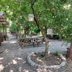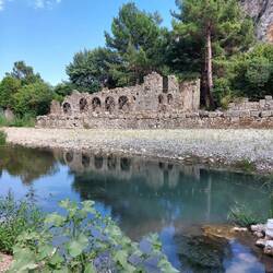 In den 70er Jahren wurde die Schönheit dieses Küstenabschnittes von Hippies entdeckt, welche sich hier niederliessen. Mit dem Kadir's Tree House entstanden erste einfache Bungalow’s. Die Unterkunft steht auch heute noch und wurde von der L.A. Times als eine der 10 coolsten Hostel’s der Welt ausgezeichnet. In der Zwischenzeit entstanden entlang des ausgetrockneten Flussbetts des Akca Flusses ein paar weitere überschaubare Pensionen, meist Bungalows in großen Gärten, in denen Bioobst und -gemüse wächst, neben dem Tourismus die zweite Einnahmequelle vieler lokaler Familien. Die Ursprünglichkeit verdankt das Dorf einer bedrohten Tierart. Der Strand von Olympos ist nämlich eine Brutstätte der Caretta Caretta, einer vom Aussterben bedrohten Meeresschildkröte 🐢. Aus diesem Grund wurde der Ort unter Naturschutz gestellt und es dürfen keine festen Häuser gebaut werden. So steht hier heute im Schatten der Bettenburgen am Golf von Antalya eine kleine und ruhige Oase. Während anderswo an der türkischen Riviera ein Meer aus Liegestühlen wartet, Jetskis und Bananenboote durchs Wasser düsen, findet hier jeder ein ruhiges Plätzchen. Wir geniessen das entspannte Flair und bleiben 4 Tage hier, chillen tagsüber bei unserer gemütlichen Unterkunft oder am Strand und gönnen uns abends das einte oder andere kühle Getränk in den wenigen aber coolen und lebendigen Bar’s des Dorfes inmitten mehrheitlich türkischen Touristen. Der Namensgeber des Dorfes ist übrigens eine antike römische Siedlung, die sich zwischen dem heutigen Dorf und dem Strand befindet. Um also vom Dorf zum Strand zu gelangen muss man (oder eher darf in diesem Fall) immer durch Teile der Ruinenstadt laufen.Les mer