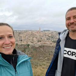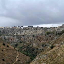 Eine Schlechtwetterfront rollt an und wir ziehen uns in unsere Höhle zurück. Von diesen gibt es nämlich in Matera ganz viele davon. Hier in den Sassi von Matera reihen sich die sandfarbenen Czytaj więcej