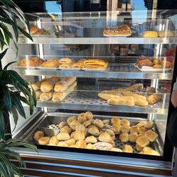 Today I walked with the Grande Prairie lady and another for half a day. We didn’t get too far when we hit the coffee shop. This is the temptation we face every morning, delicious Pastelerias.