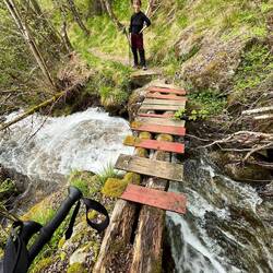 Nous repartons sous peu pour entamer la redescente le long de l’autre flanc de la montagne. Il y a pleins de jolis cascades et de torrents. Avec la fonte des neiges au printemps, l’eau bat son plein!